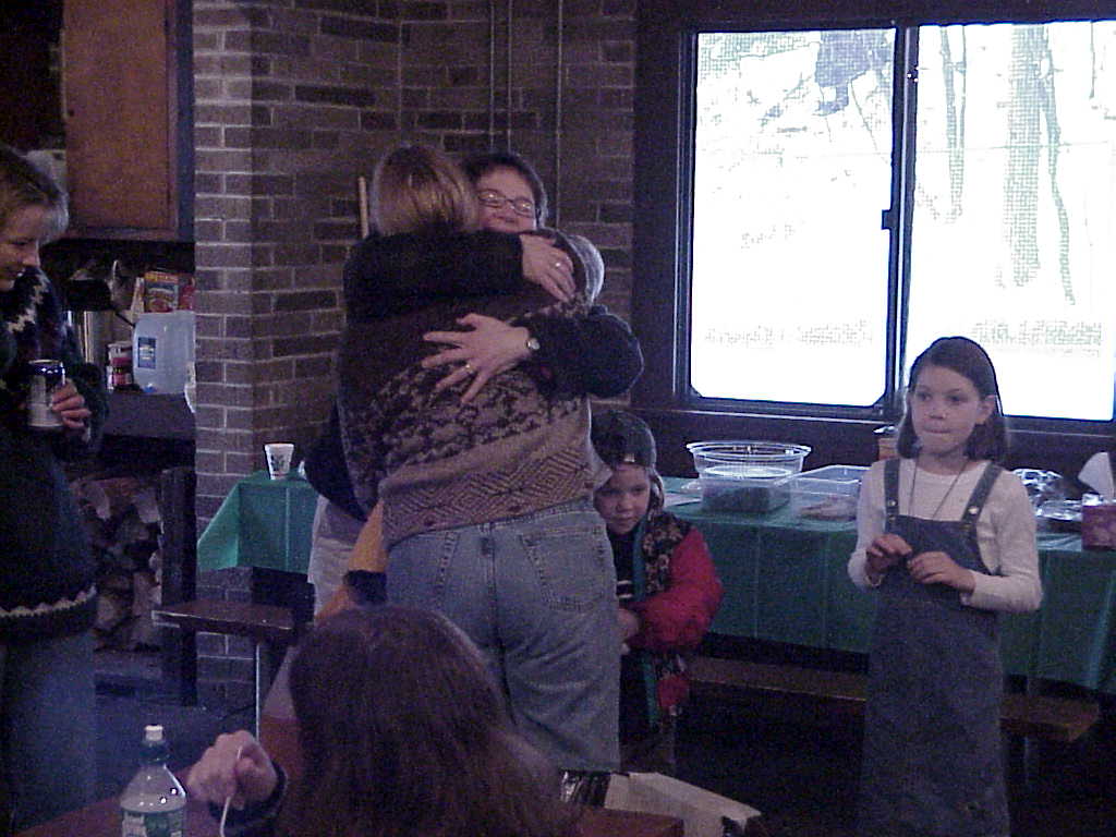 Mrs. Palum gets a holiday hug from Mrs. Indovina (where's my Kleenex)