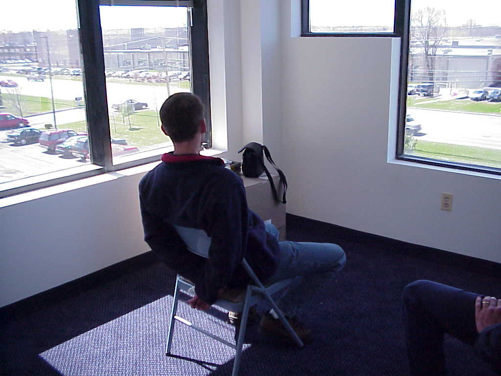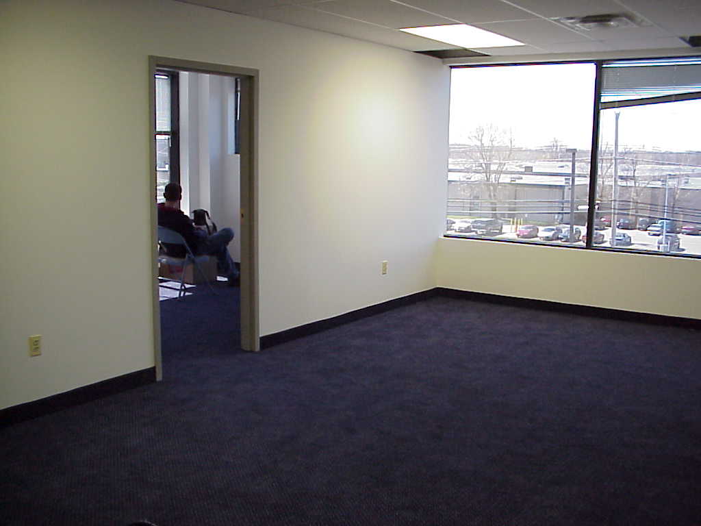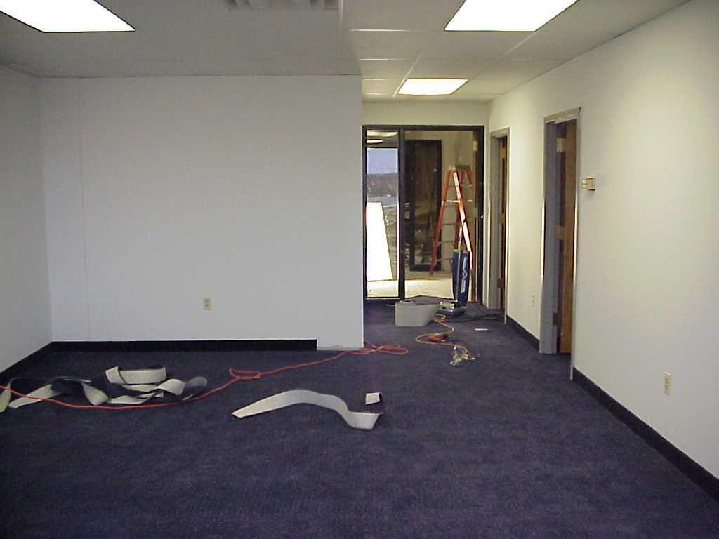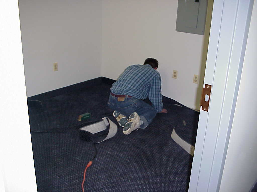 Our landloard finishing the carpet