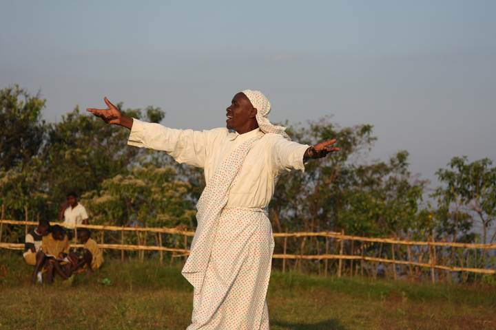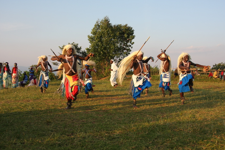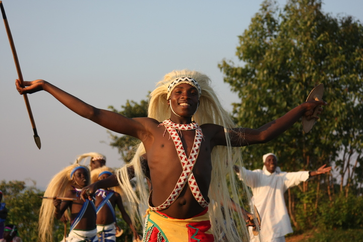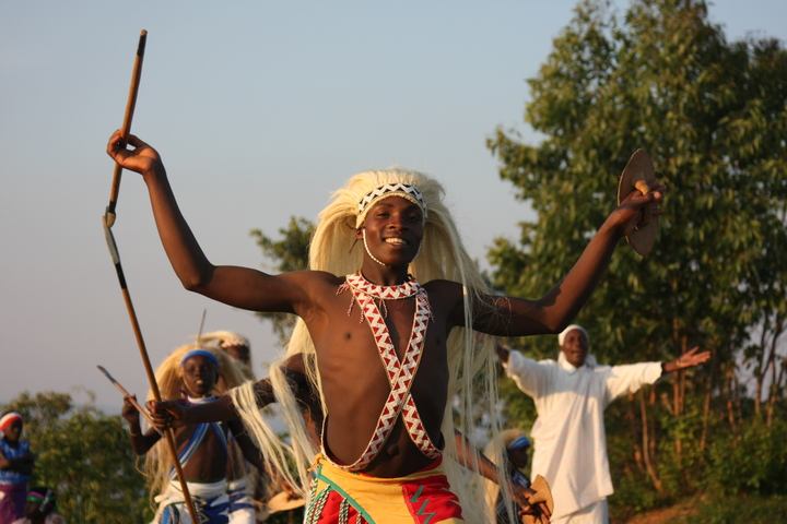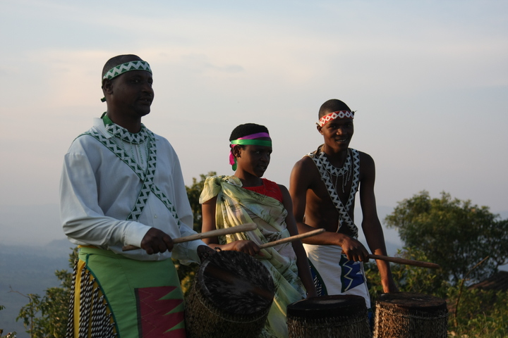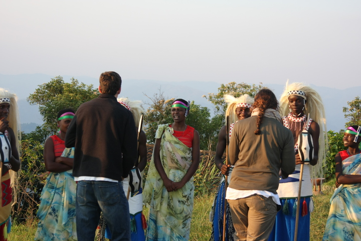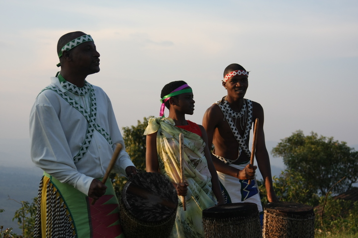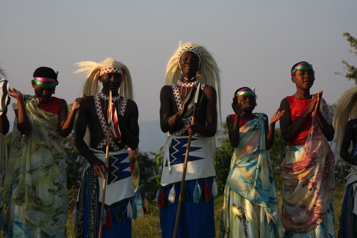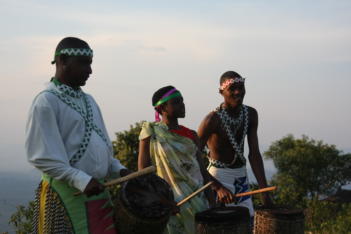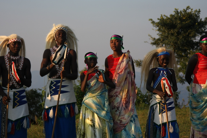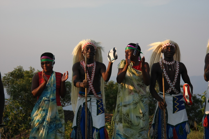 The Intore Dancers from the local village perform for the Virunga Lodge guests