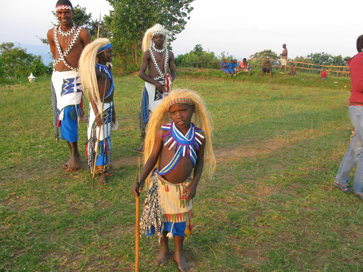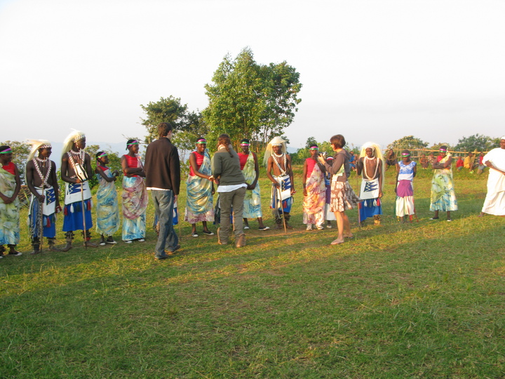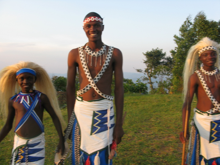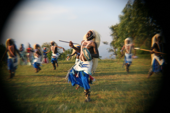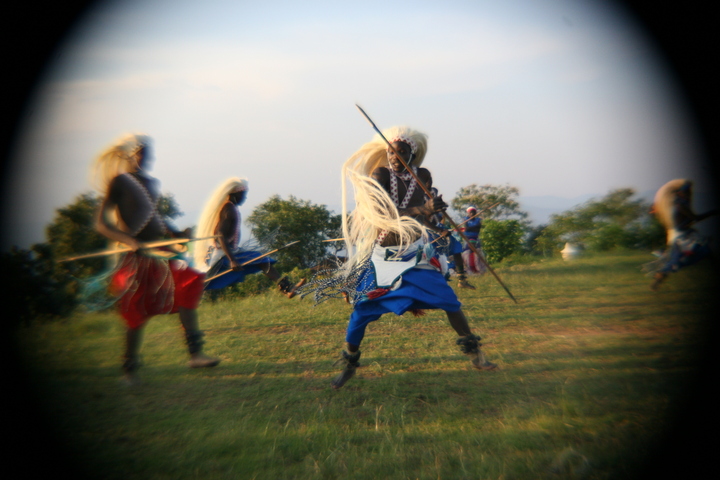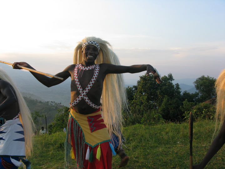 The Intore Dancers from the local village perform for the Virunga Lodge guests