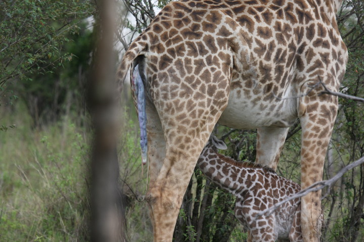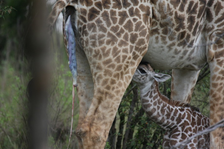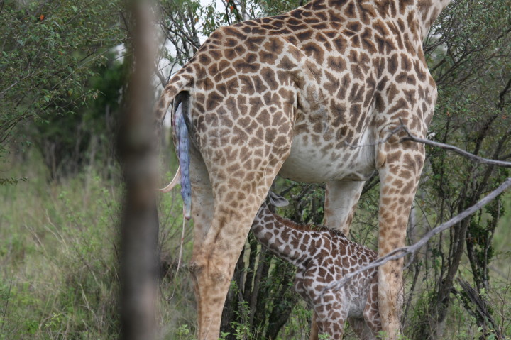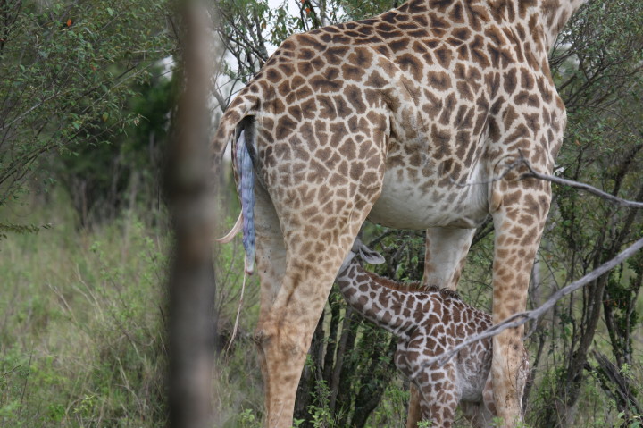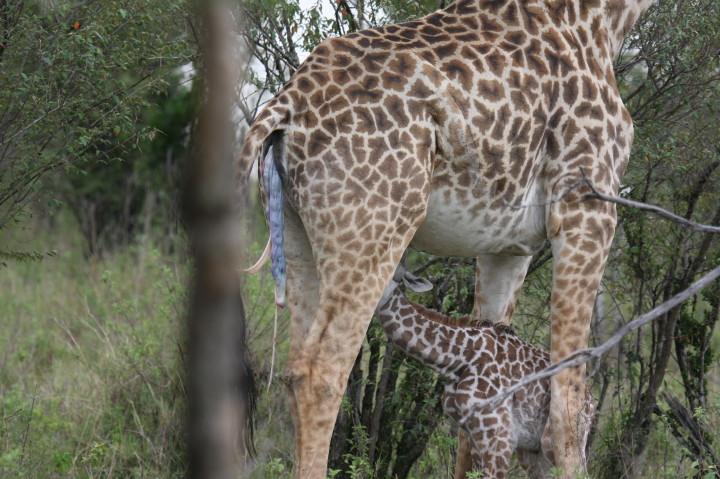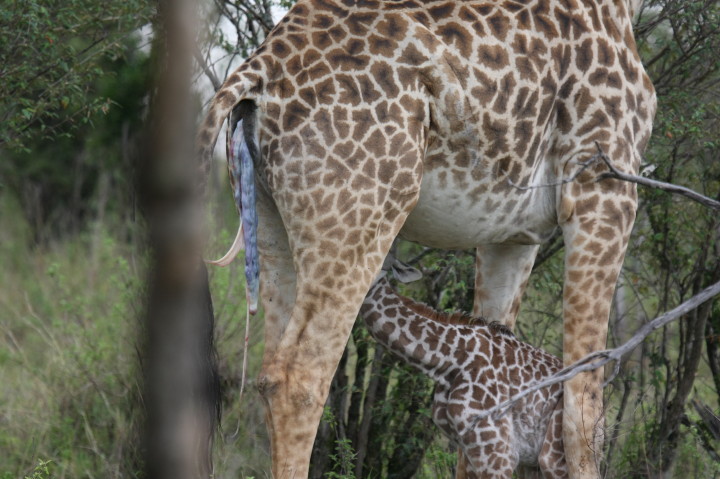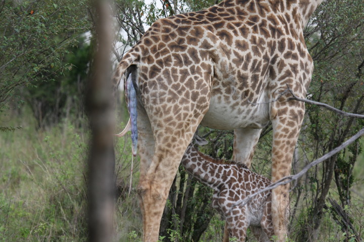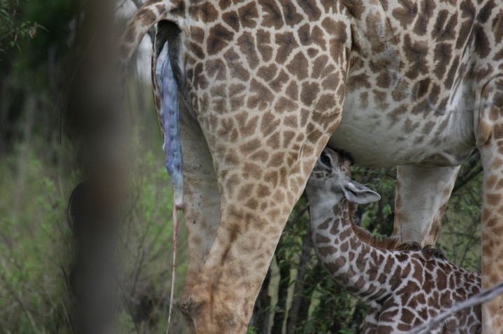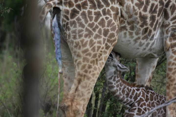 Wildlife: New Born Masai Giraffe and Mother
