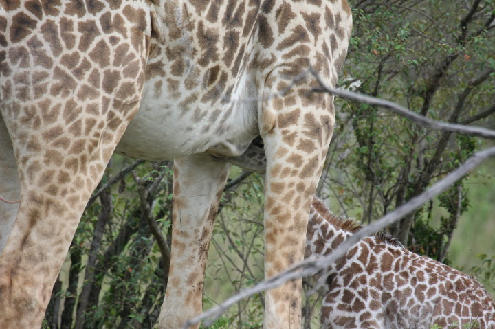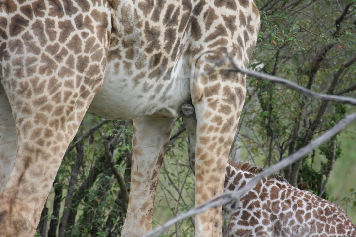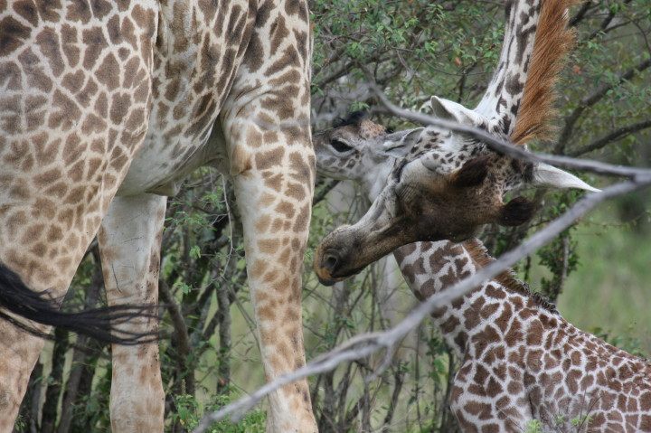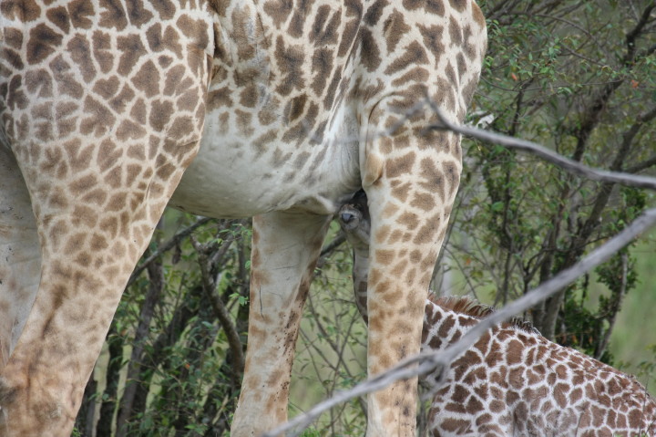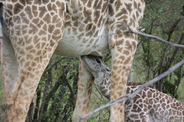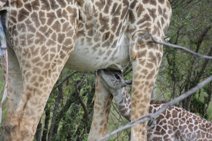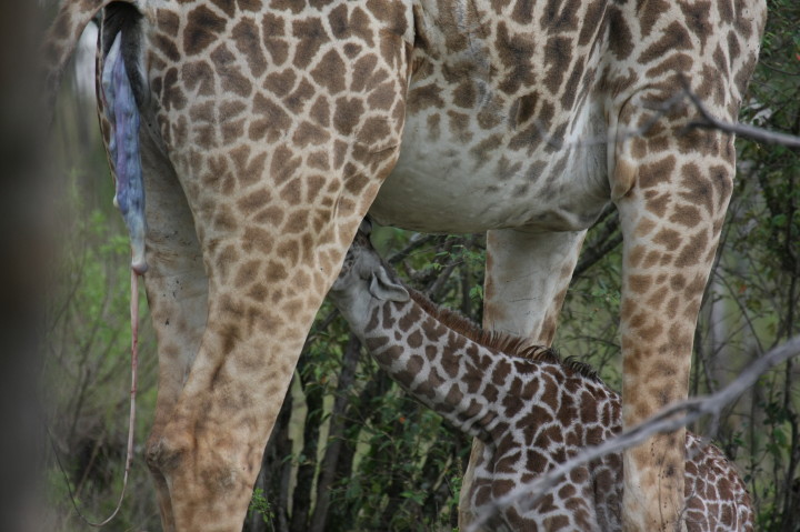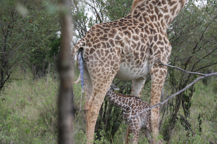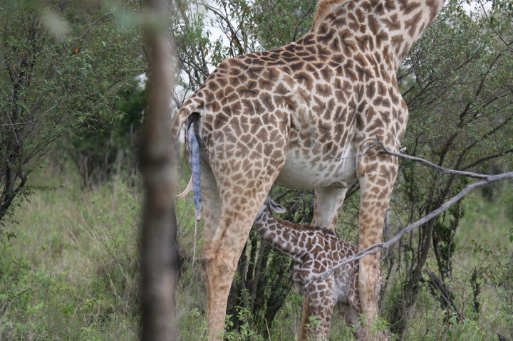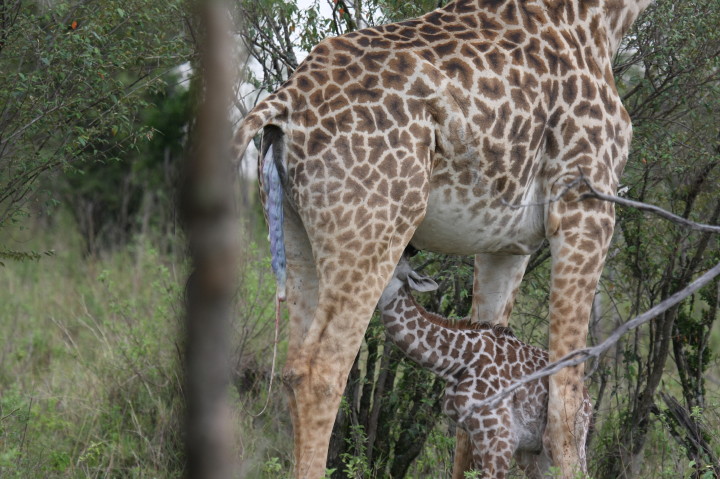 Wildlife: New Born Masai Giraffe and Mother