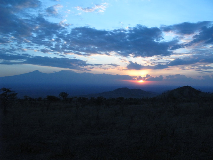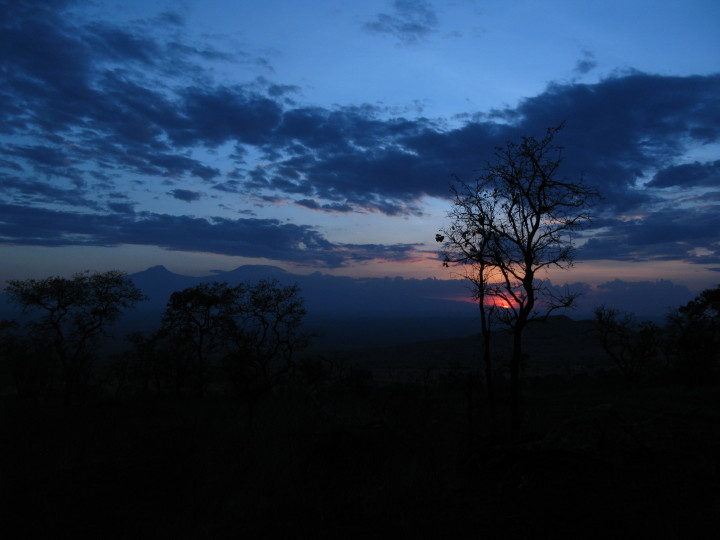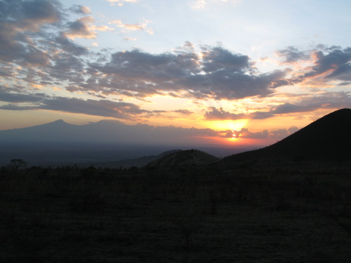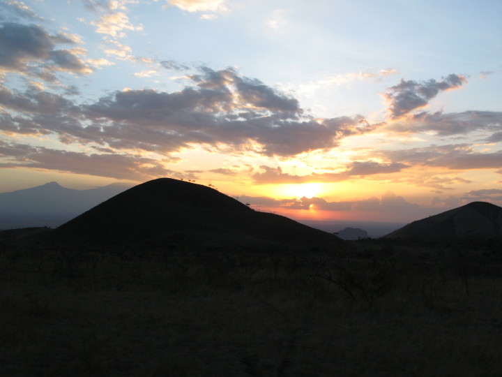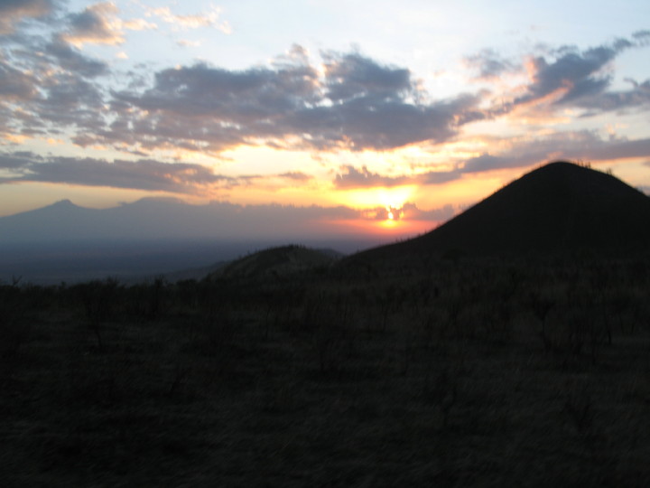 Hiking in the Chyulu hills at sunset