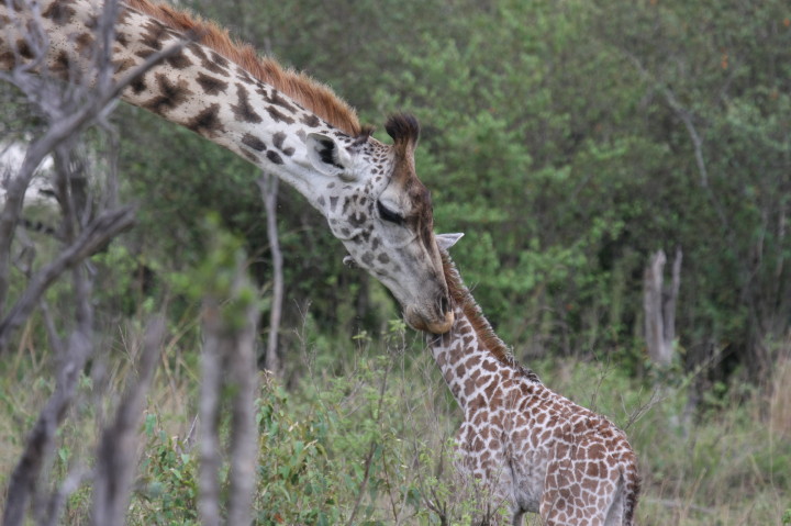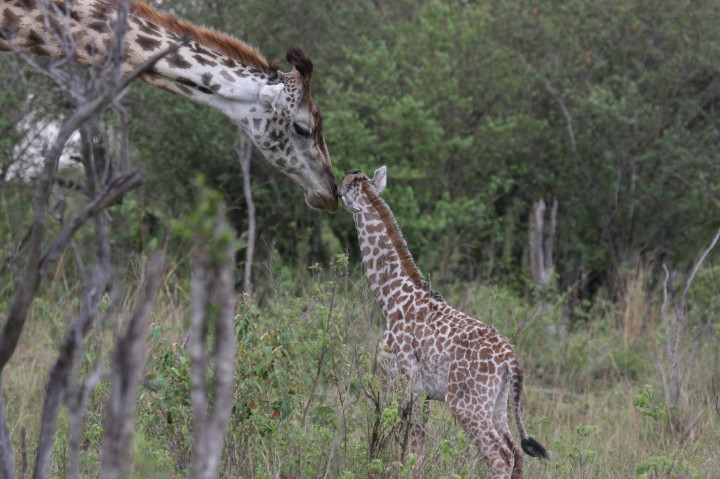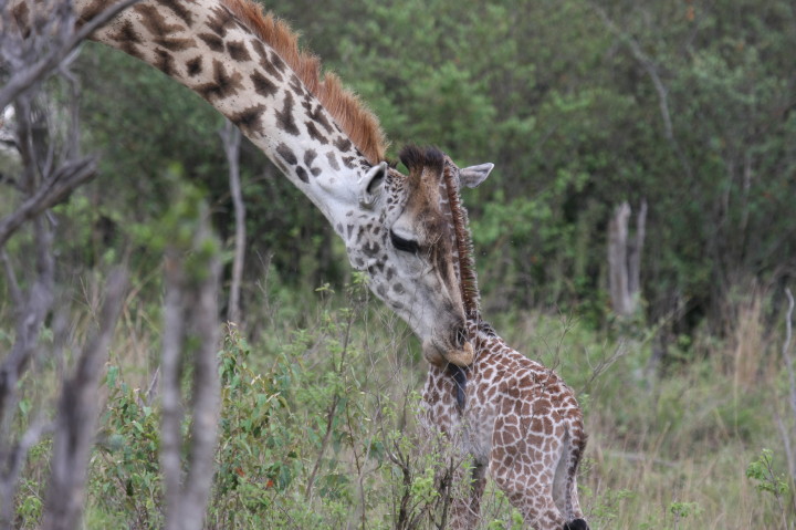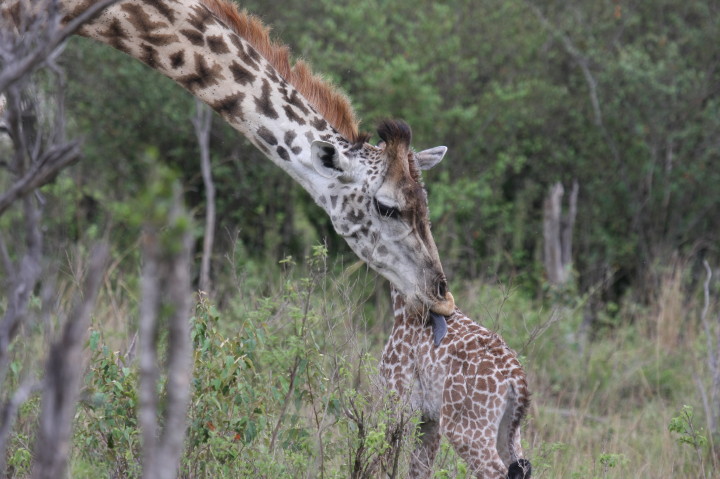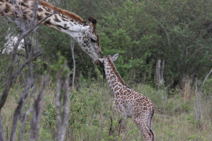 Wildlife: New Born Masai Giraffe and Mother